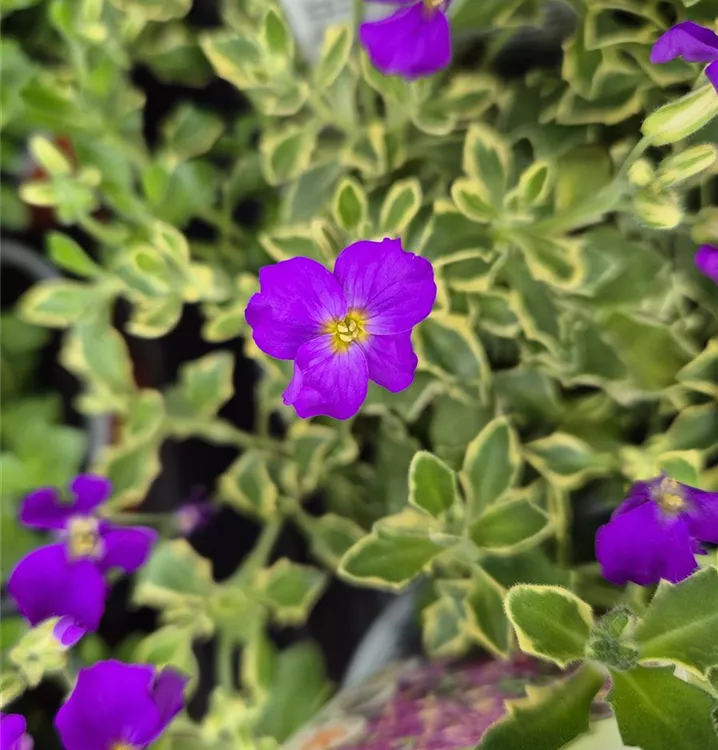 Besonders gut können Sie das Garten-Blaukissen 'Dr. Mules Variegata' mit Garten-Teppich-Flammenblume zusammenpflanzen, aber auch Felsen-Schleifenblume passen sehr gut dazu.