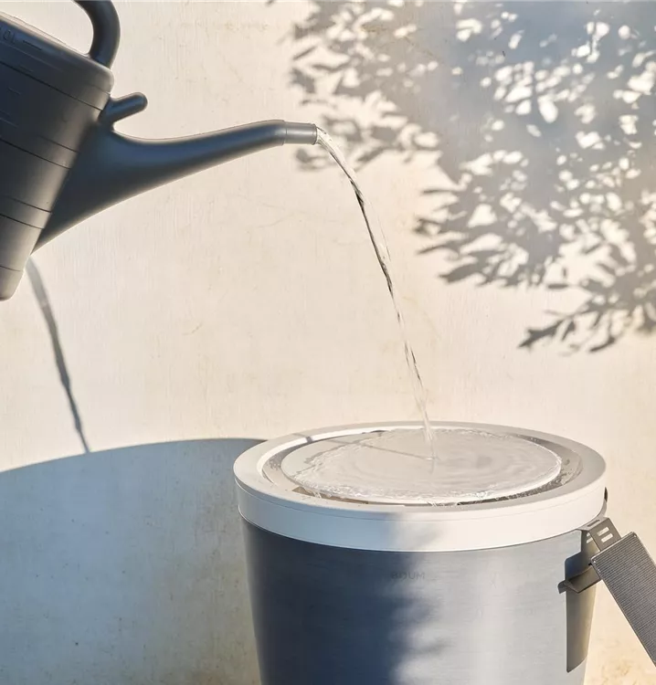 Automatische, selbstregulierende Bewässerung. Zwei Wochen autonom, auch in den Ferien. Mit Wassertank (35L) und Solarpanel. Keine Anschlüsse nötig. Sensoren für Wasserverbrauch und Balkonklima, mit Nachfüllwarnungen. Optimale Bodenfeuchte ohne mühsames Einstellen.