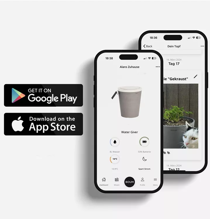 - Smart & vernetzt – Steuerung über die Boum App, inkl. Wasser-, Dünge-, Sturm- & Frostwarnungen sowie Tipps für >3.500 Pflanzen