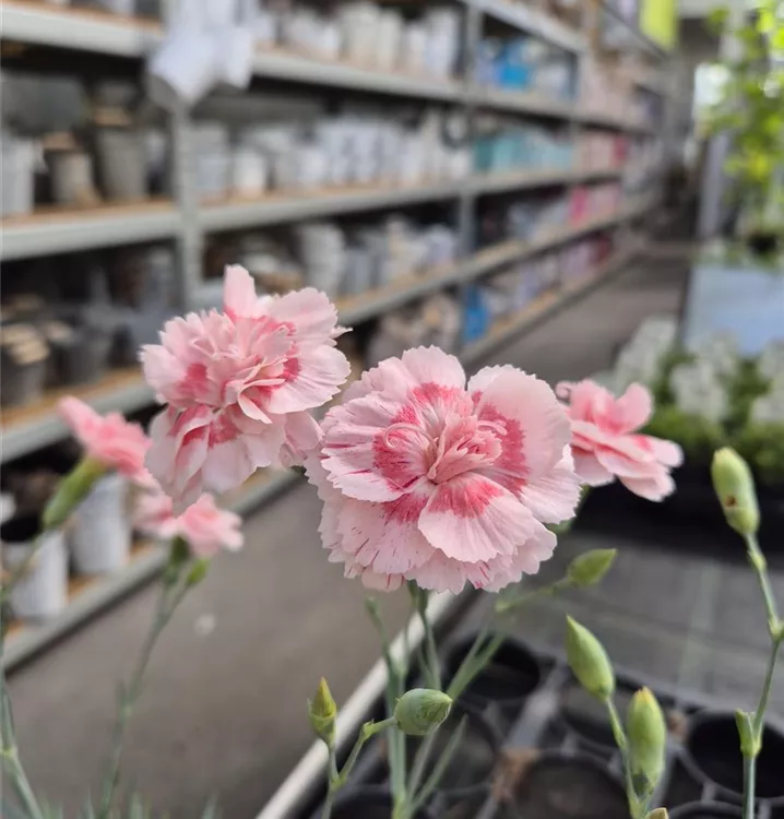Die Garten-Feder-Nelke 'Doris' schätzt eine regelmässige Wasserversorgung, die Erde darf aber auch mal antrocknen.