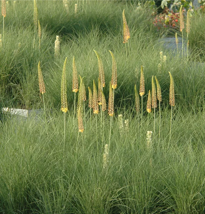 Besonders gut können Sie die Steppenkerze 'Cleopatra' mit Asiatische Pfingstrose zusammenpflanzen, aber auch Orientalischer Mohn und Hohe Bartiris passen sehr gut dazu.