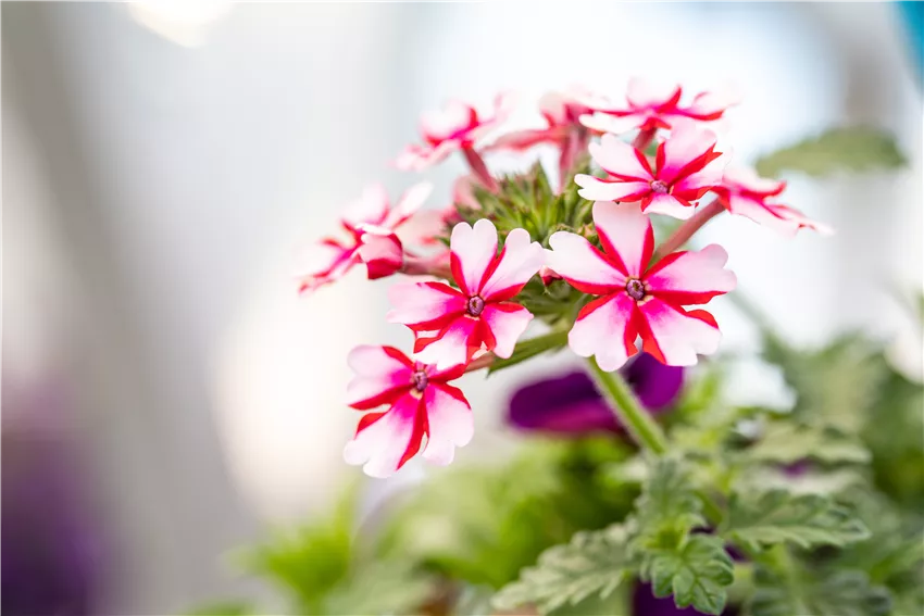 Verbena Hybride, weiß-rot Ob Hängepflanzen oder Kübelpflanzen, ob im Beet oder auf der Terrasse, mit der richtigen Erde und den passenden Pflanzen steht dem Blütenparadies auf dem Balkon oder im Beet nichts mehr im Wege. Das bedeutet aber auch, dass Pflanzabstände eingehalten werden und Beet und Balkonkasten nicht zu dicht bepflanzt werden. Dafür gibt es eine Faustregel, an die sich jeder Hobbygärtner halten sollte. Für ein Pflanzgefäss mit einem Durchmesser von einem Meter gilt: 4 bis 5 Pflanzen einsetzen. Dafür werden die Gefässe bis zur Hälfte mit Erde befüllt und die Pflanzen vorsichtig aus den Pflanztöpfen herausgenommen. Nach der langen Zeit im zu engen Gefäss sind die Wurzelballen der Pflanzen stark gepresst und können mit der Hand einfach aufgelockert werden. Dann dürfen die Pflanzen einziehen, die Erde aufgefüllt werden und anschliessend folgt eine ordentliche Portion Wasser. Damit steht der Blütenpracht im neuen Jahr nichts mehr im Wege.