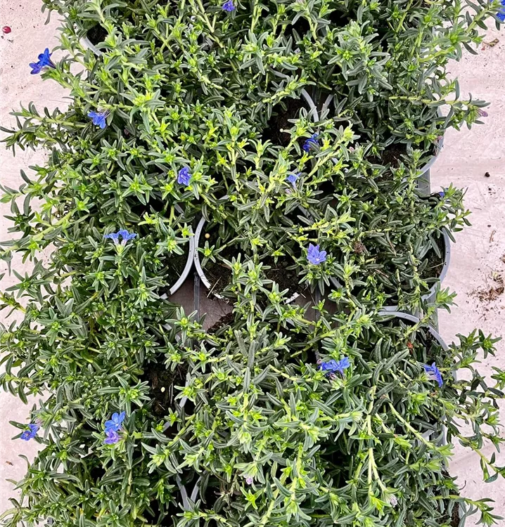 Beet und Rabatten lassen sich mit der Garten-Scheinsteinsame 'Heavenly Blue' (Lithodora diffusa) attraktiv gestalten. Dafür sorgen ihre trichterförmigen Blüten, die von Mai bis Juli in schönstem Blau erscheinen. Besonders geeignet ist die Garten-Scheinsteinsame 'Heavenly Blue' für sonnige Standorte. Pflanzen Sie sie in durchlässige, schwachsaure, trockene Erde und sorgen Sie dafür, dass keine Staunässe entsteht, dann entwickelt sich diese Staude zu einem schönen, etwa 20 cm hohem und 30 cm breiten, mattenbildenden Exemplar. Damit ist sie unter anderem ein guter Bodendecker in Steingärten, gedeiht aber auch hervorragend in Kübeln auf Balkon oder Terrasse.
