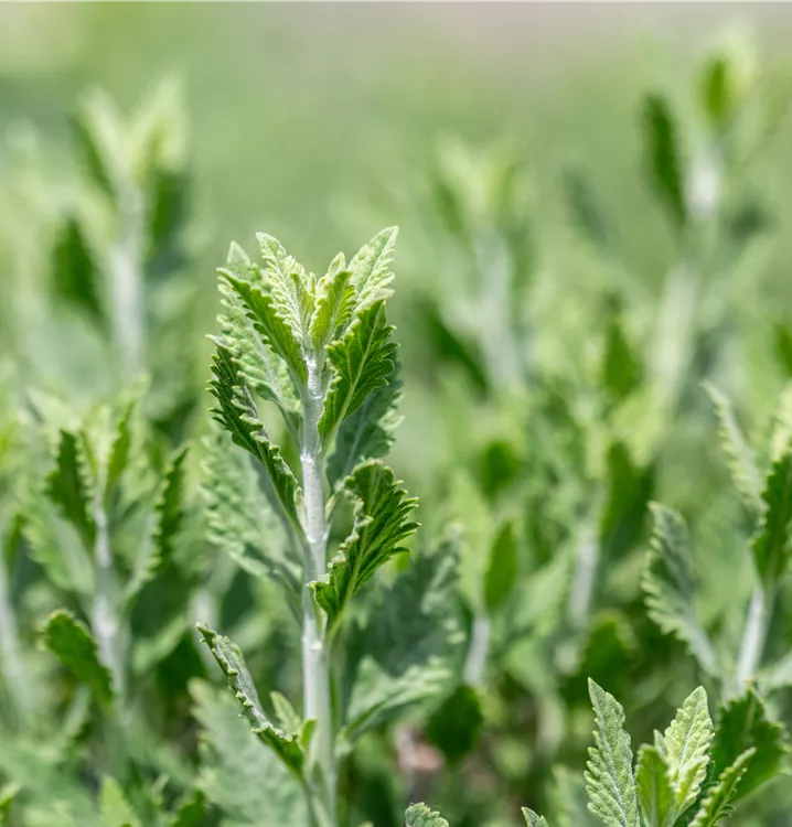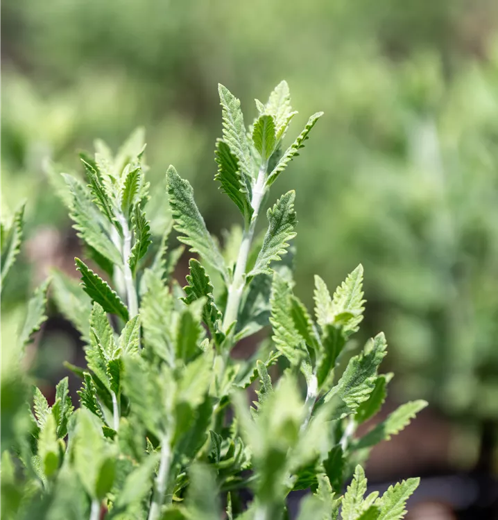 Bei der Blauraute 'Prime Time'(s) (Perovskia atriplicifolia) stehen ganz klar die geschnittenen, immergrünen Blätter im Vordergrund, die eine schöne graugrüne Farbe haben. Zwischen Juli und Oktober bringt sie lavendelfarbige Blüten mit angenehmem Duft hervor. Als aufrechtes, dichtes Gehölz erreicht die Blauraute 'Prime Time'(s) Grössen von bis zu 1,5 m Höhe und 1,5 m Breite. Am besten kommt sie zur Geltung, wenn Sie ihr einen sonnigen Standort geben, optimalerweise mit durchlässigem, sandigem Boden und einer ausreichenden Wasserversorgung.
