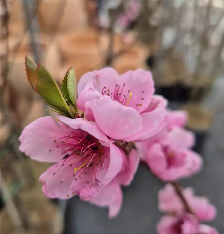 Die Säulennektarine 'Alice-Col'® schätzt eine regelmässige Wasserversorgung, die Erde darf aber auch mal antrocknen.