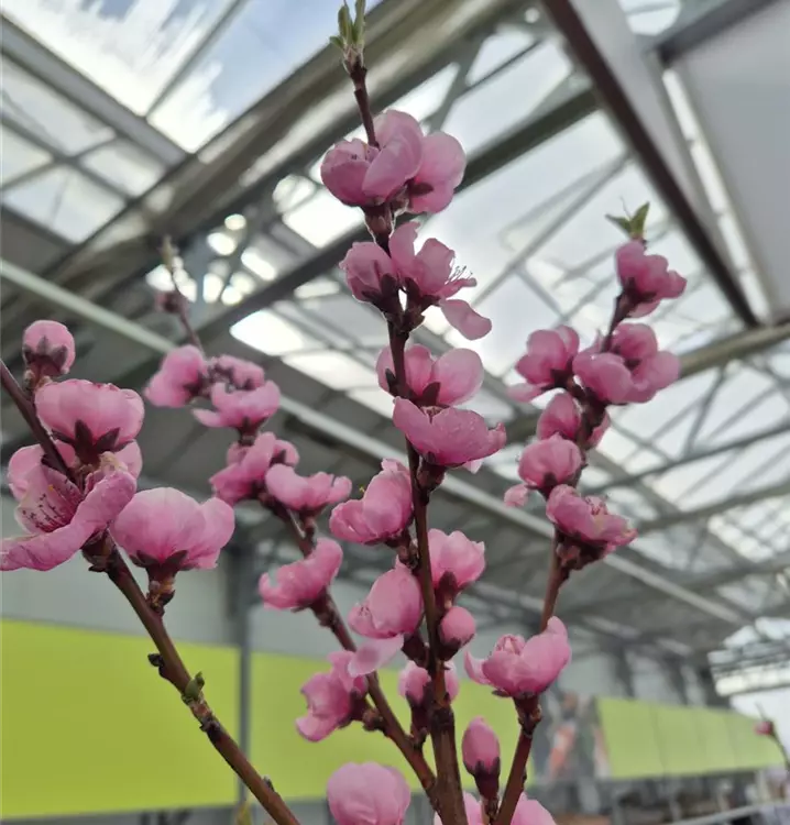 Botanisch wird die Säulennektarine 'Alice-Col'® auch Prunus persica var. nucipersica 'Fruttini® Alicecol®' genannt.