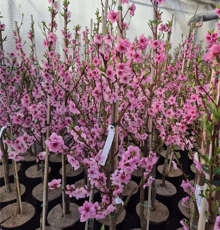 Die Tellernektarine entwickelt sich zu einem aufrechten Kleinbaum. Sie erreicht eine Höhe von 4 - 5 m, bei einer Breite von 4 - 5 m.