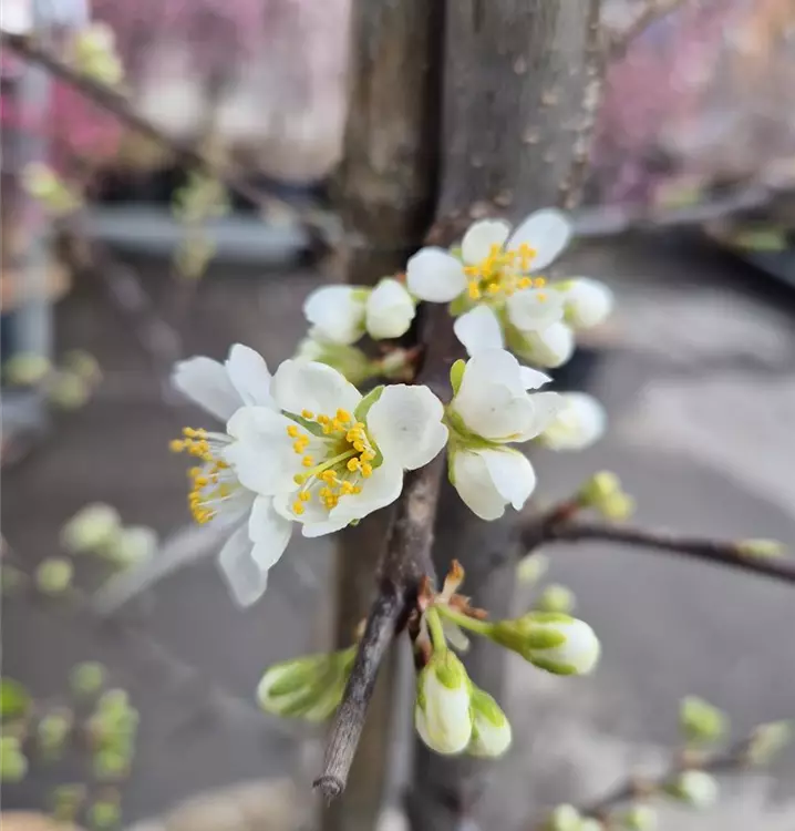Die Säulenzwetschge 'Pruntop' schätzt eine regelmässige Wasserversorgung, die Erde darf aber auch mal antrocknen.