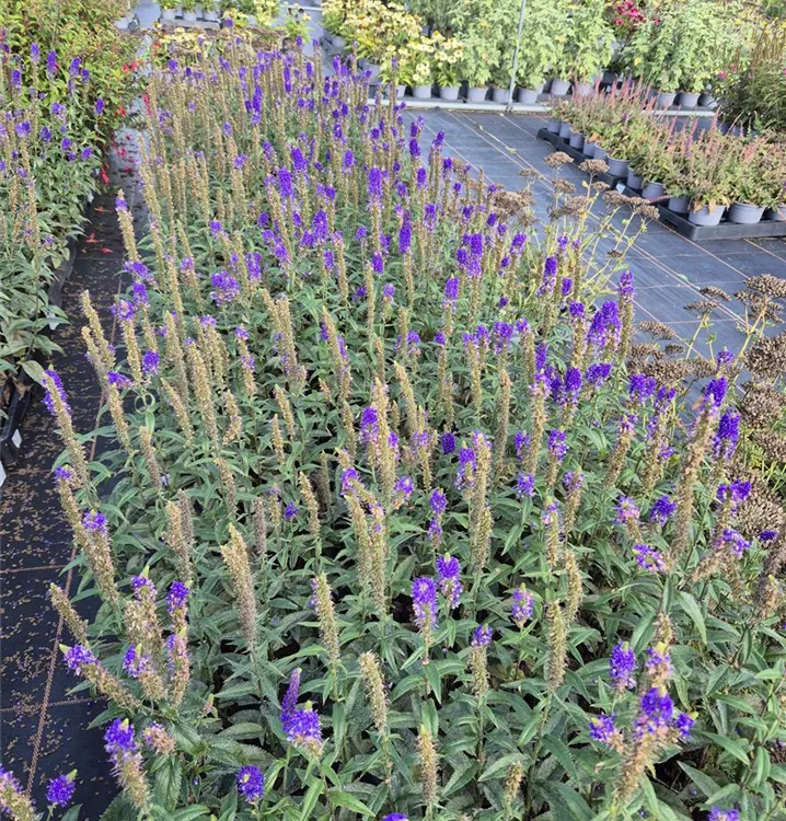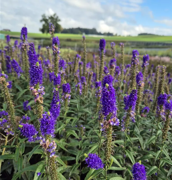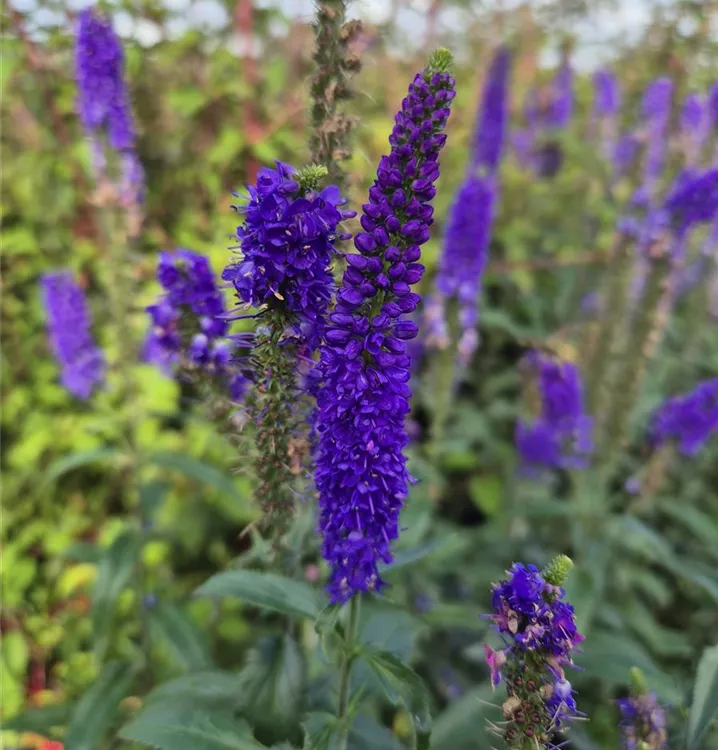 Beet und Rabatten lassen sich mit dem Langblättriger Garten-Ehrenpreis 'First Glory' (Veronica longifolia) attraktiv gestalten. Dafür sorgen seine rachenförmigen Blüten, die von Juli bis August in schönstem Blauviolett erscheinen. Abgerundet wird seine Erscheinung durch die lanzettlichen, mittelgrünen Blätter. Besonders geeignet ist der Langblättriger Garten-Ehrenpreis 'First Glory' für sonnige Standorte. Pflanzen Sie ihn in durchlässige, humose, nährstoffreiche Erde und sorgen Sie immer für genügend Wasser, dann entwickelt sich diese Staude zu einem schönen, etwa 30 cm hohem und 30 cm breiten, buschigen, aufrechten Exemplar.