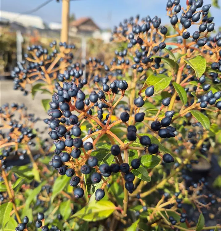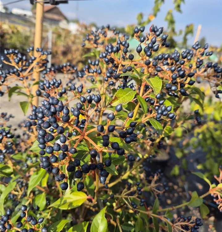 Die blau-grauen, ovalen Früchte sind ab August eine Zierde.