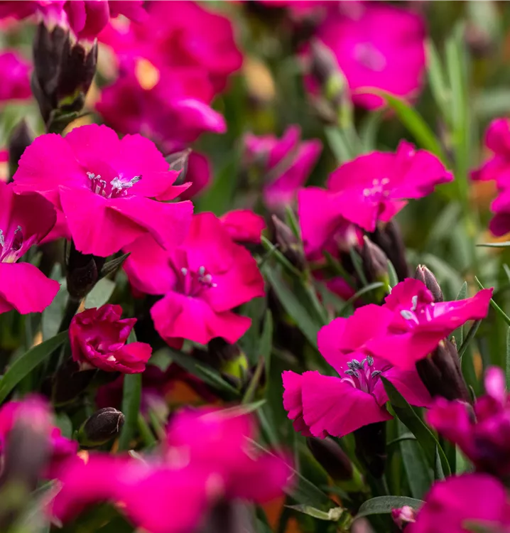 Les plates-bandes et les bordures peuvent être aménagées de manière attrayante avec le Nelke 'Scully'® (Dianthus). Ses fleurs, qui apparaissent de juin à août, sont d'un beau rouge pourpre. Leur apparence est complétée par des feuilles lancéolées vert foncé. La Nelke 'Scully'®@ est particulièrement adaptée aux emplacements ensoleillés. Plantez-la dans une terre perméable et meuble et veillez à ce qu'elle soit toujours suffisamment arrosée. Cette plante vivace se développera alors en un beau spécimen compact d'environ 20 cm de haut et 20 cm de large.
