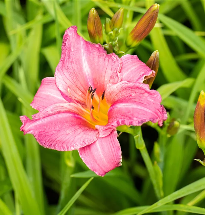 Les massifs et les bordures peuvent être aménagés de manière attrayante avec l'Lis d'un jour (Hemerocallis). Ses fleurs en forme d'entonnoir, qui apparaissent de juin à juillet, sont d'un beau rouge pourpre. Leur apparence est complétée par des feuilles lancéolées vert moyen. La Lis d'un jour est particulièrement adaptée aux endroits ensoleillés. Plantez-la dans une terre perméable et riche en nutriments et veillez à ce qu'elle soit toujours suffisamment arrosée. Cette plante vivace se développera alors en un beau spécimen érigé d'environ 60 cm de haut et 50 cm de large.
