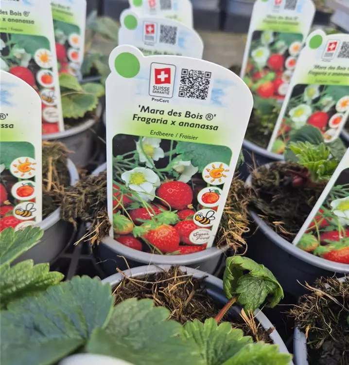 Botaniquement, la Fraisier 'Mara de Bois' est aussi appelée Fragaria × magna.
