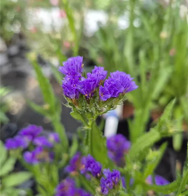 La Statice 'Fortress Dark Blue' apprécie un apport régulier en eau, mais la terre peut aussi sécher de temps en temps.