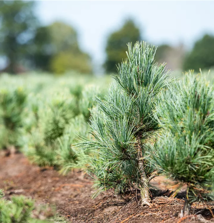 La Le pin blanc 'Glauca' apprécie un apport régulier en eau, mais la terre peut aussi sécher de temps en temps.