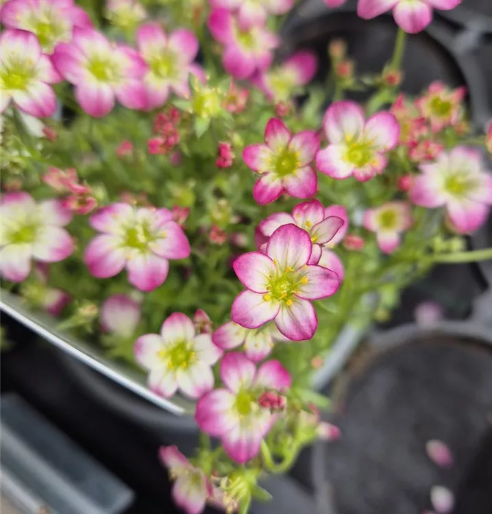 La Saxifage 'Highlander Rose Shades' apprécie un apport régulier en eau, mais la terre peut aussi sécher de temps en temps.