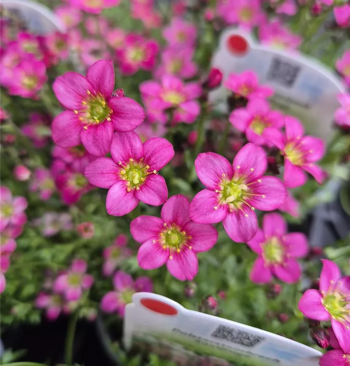 Les plates-bandes et les bordures peuvent être aménagées de manière attrayante avec la Garten-Moos-Steinbrech 'Marto Rose' (Saxifraga x arendsii). Ses fleurs en forme de coupe, qui apparaissent de mars à juin, sont d'un beau rose. Son apparence est complétée par des feuilles digitées de couleur vert moyen. L'Garten-Moos-Steinbrech 'Marto Rose'@ convient particulièrement bien aux endroits ensoleillés ou semi-ombragés. Plantez cette plante vivace dans une terre perméable et meuble et veillez à ce qu'elle soit toujours suffisamment arrosée. Elle se développera alors en une belle rosette d'environ 12 cm de haut et 20 cm de large, formant un coussin. Cela en fait, entre autres, un bon couvre-sol dans les rocailles.