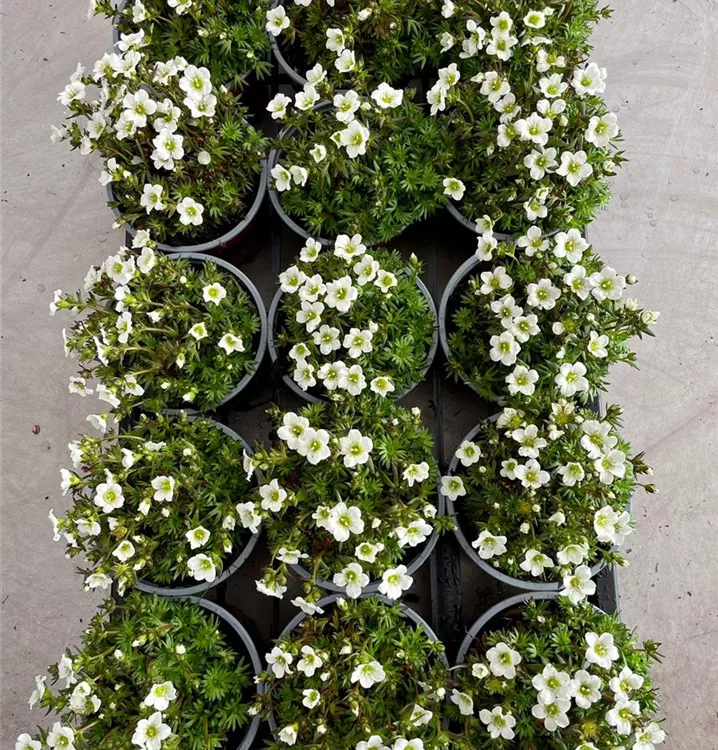 Les plates-bandes et les bordures peuvent être aménagées de manière attrayante avec la Garten-Moos-Steinbrech 'Marto White' (Saxifraga x arendsii). Ses fleurs en forme de coupe, qui apparaissent de mars à juin, sont d'un blanc éclatant. Son apparence est complétée par des feuilles digitées de couleur vert moyen. L'Garten-Moos-Steinbrech 'Marto White'@ convient particulièrement bien aux endroits ensoleillés ou semi-ombragés. Plantez cette plante vivace dans une terre perméable et meuble et veillez à ce qu'elle soit toujours suffisamment arrosée. Elle se développera alors en une belle rosette d'environ 12 cm de haut et 20 cm de large, formant un coussin. Cela en fait, entre autres, un bon couvre-sol dans les rocailles.