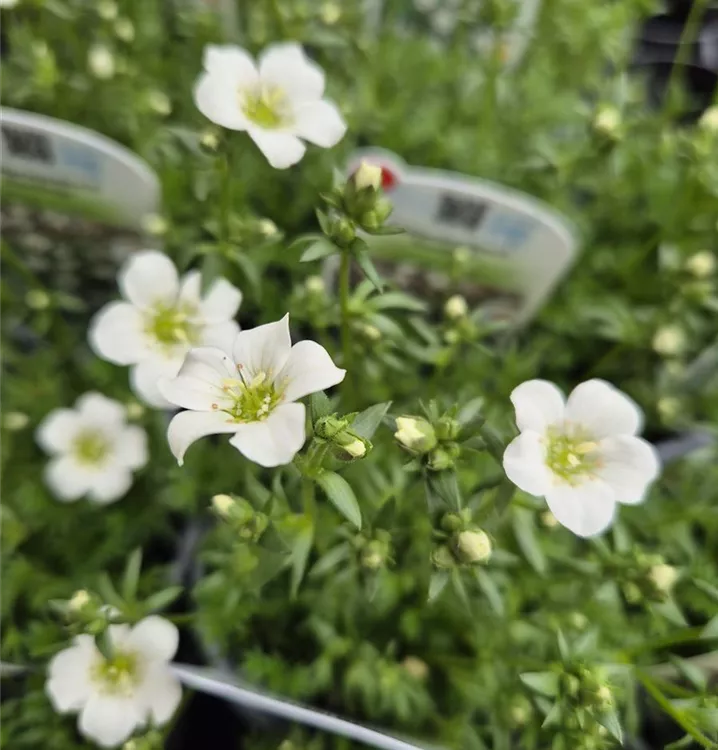 La Garten-Moos-Steinbrech 'Marto White' apprécie un apport régulier en eau, mais la terre peut aussi sécher de temps en temps.